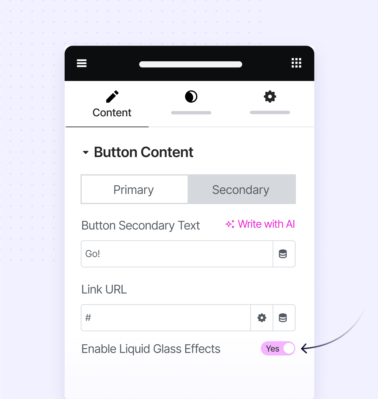 Enable the toggle to apply glassmorphism & make your elements eye-catching