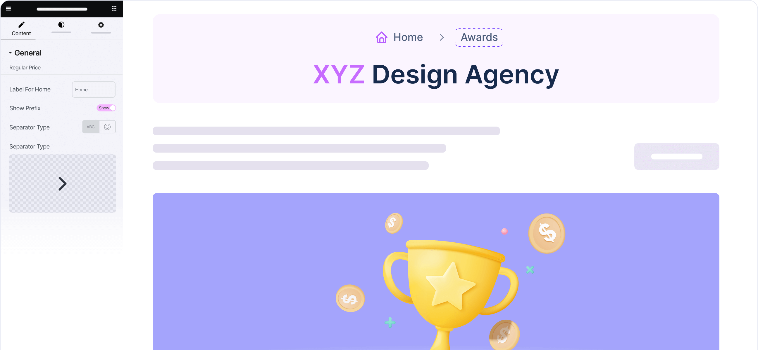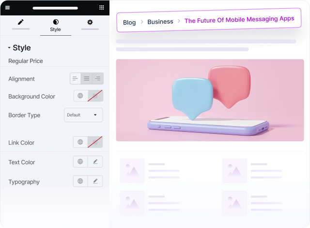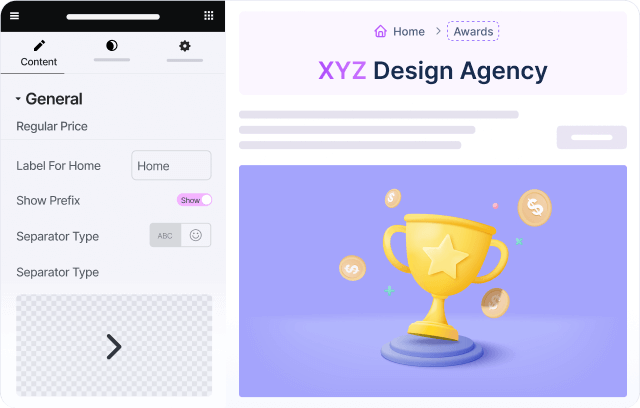 Get a host of styling options and customize your Breadcrumbs, including alignment, colors, typography and more to design your breadcrumbs the way you want