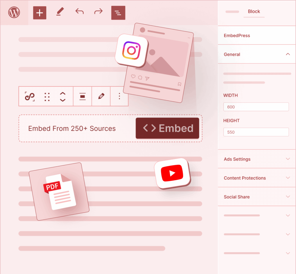 EmbedPress connects your WordPress site to multiple web services, making it easier for you to display content on your website”