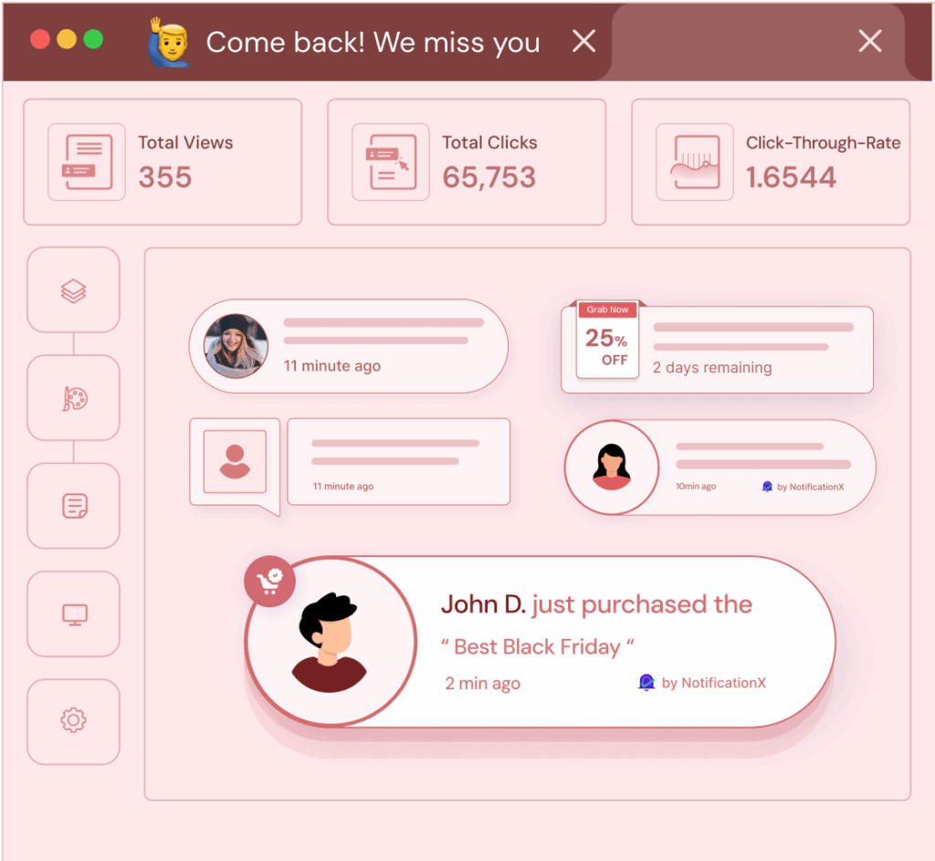 Build social proof across your site with 15+ notification alerts, 20+ powerful integrations and ready-to-use bars that boost conversions; trusted by 40K+ businesses.