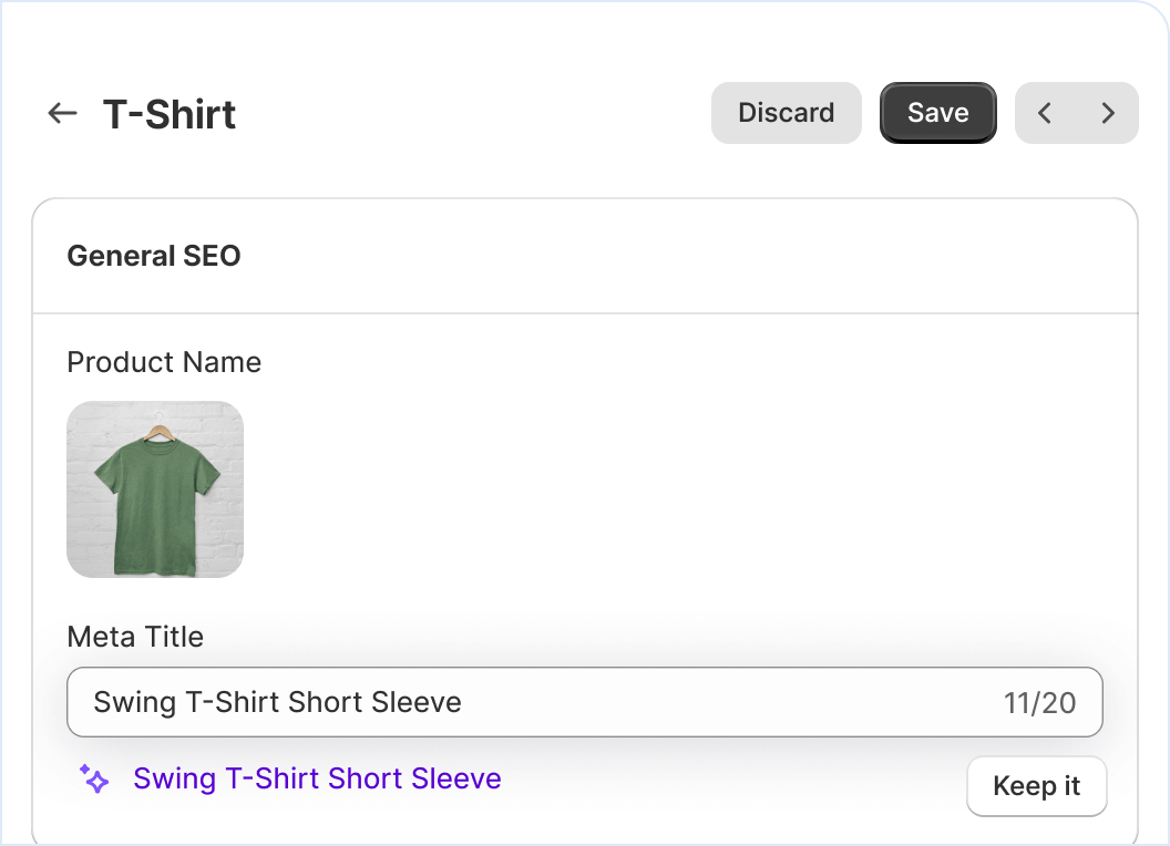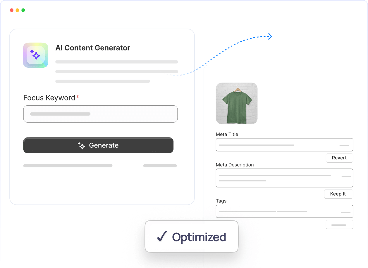 With AI Content Optimizer for Shopify stores you can quickly generate fully optimized metadata in no time.