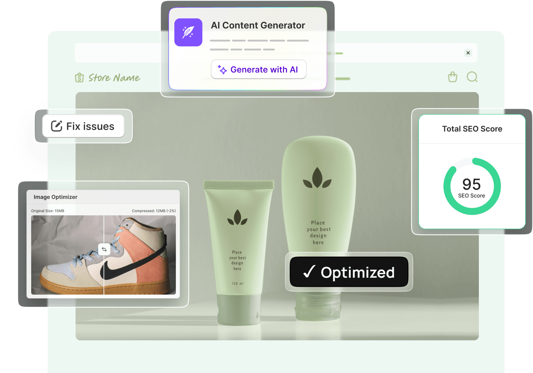 Get in-depth SEO analysis for your Shopify store to automatically optimize and fix all SEO related issues for your products