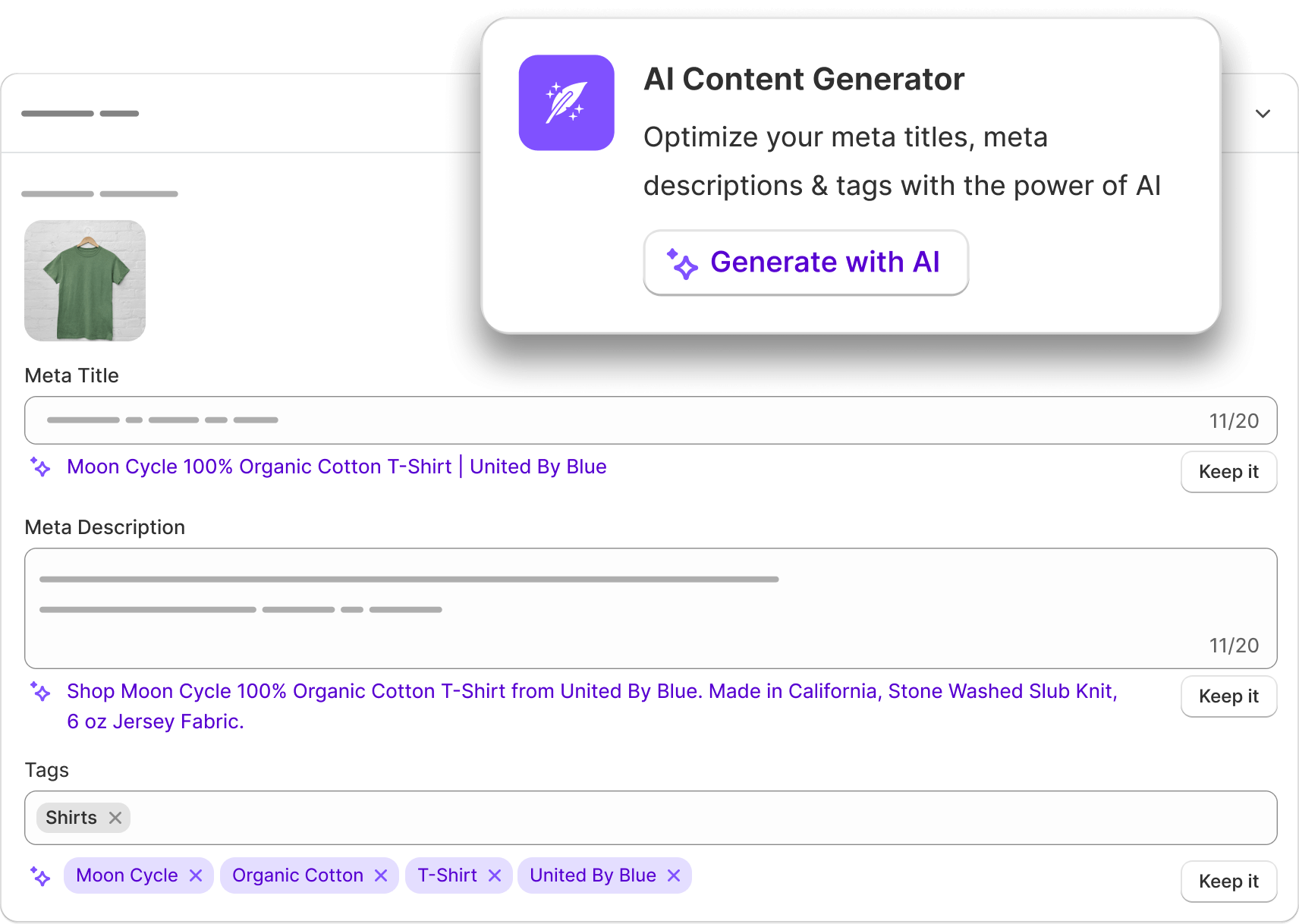 This app has been invaluable to fixing the SEO tags within my Shopify store the help enhance search rankings. The tool allows me to go through each individual listing and provide a score and detailed suggestions to increase visibility. Highly recommended to shop owner needing to improve their SEO