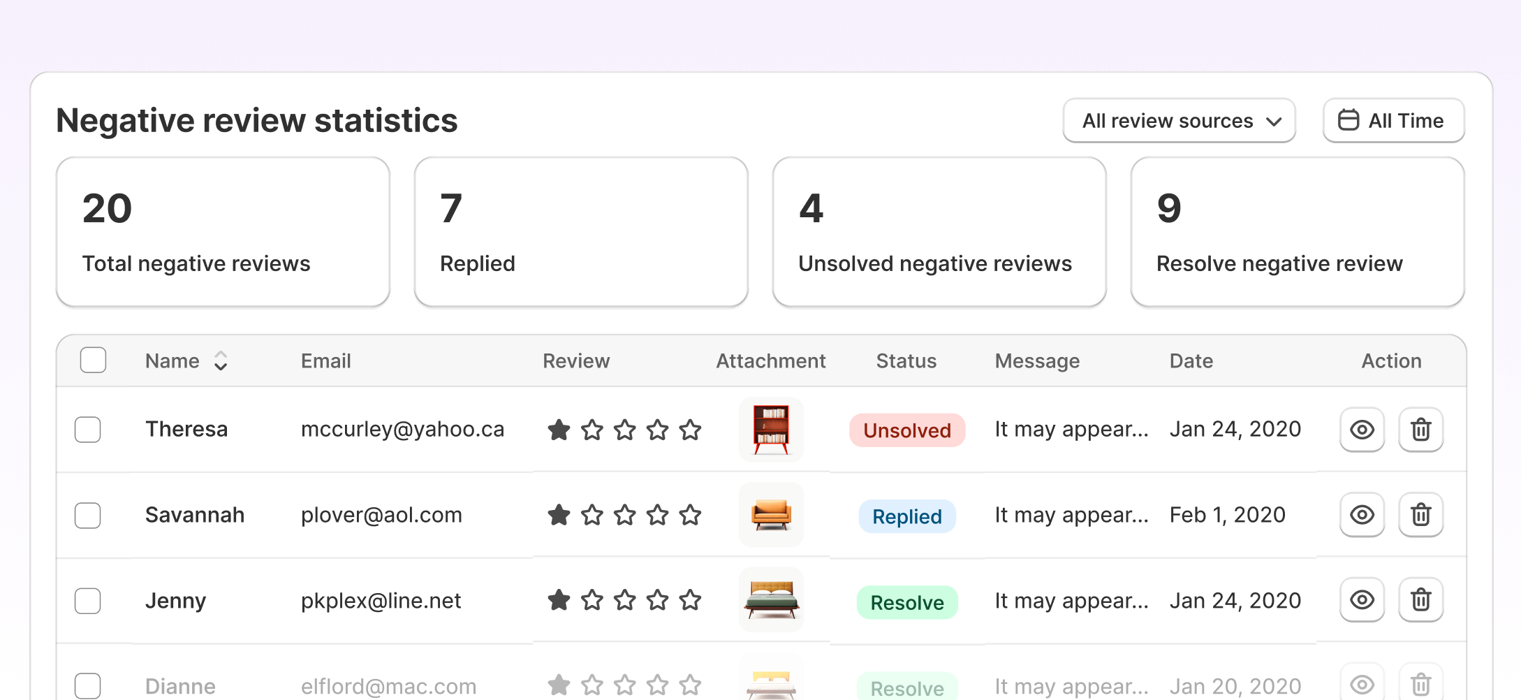 Stop publishing negative reviews on your chosen review platforms. Whenever customers intend to give poor ratings, bring them to TrustSync dashboard, communicate, resolve, and turn them into happy customers.