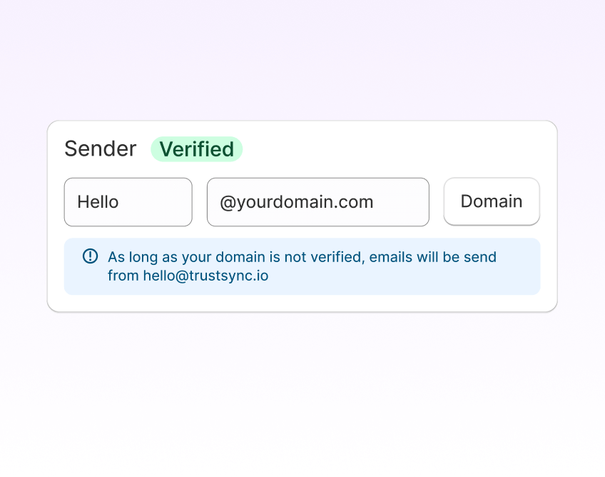 Build credibility by adding your business domain to send all review request emails. Skip sending from TrustSync branding & avoid being flagged.